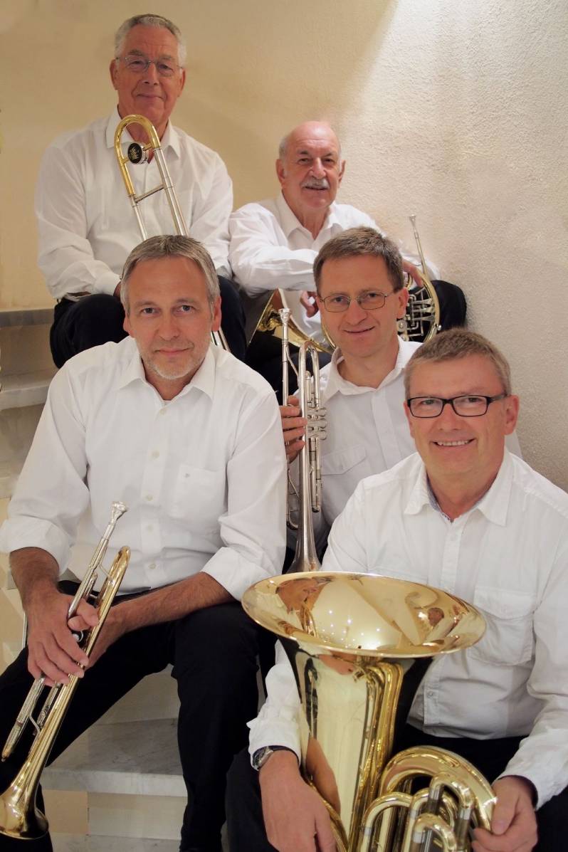 Auf dem Bild das Blechbläserquintett: Peter Gassner, Roland Sauter, Werner Schmidt, Volker Befurt und Michael Maurer.