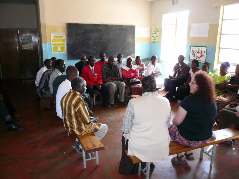 Bei der Gemeindeversammlung in Mulanga wurde das Projekt Lehrerunterkünfte detailliert besprochen.